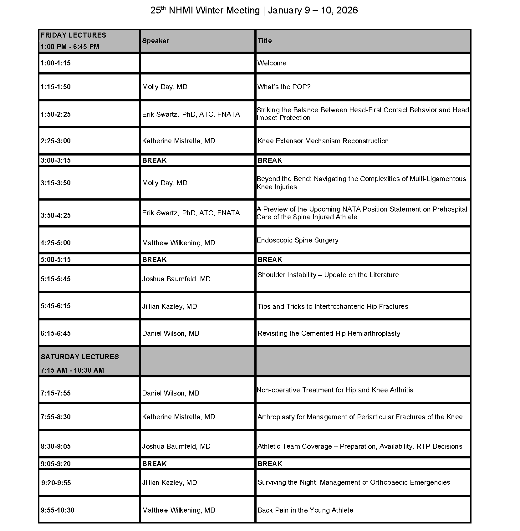*We reserve the right to make changes to the meeting faculty, topics, and/or schedule.